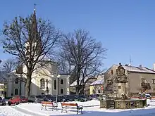 The landmark of the town is the Church of Saint Bartholomew, built in 1672–1690. Other monuments at the town square are the neo-Renaissance town hall from 1894 and a Baroque Marian column with a rare statue of the Virgin Mary of Carmel from 1731.[6]