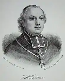 François-Hyacinthe-Jean Feutrier was born in Paris on 3 April 1785. He studied at the seminary of Saint-Sulpice under Abbé Emery, and embraced a career in the church.[1] He was ordained a priest on 27 May 1809.[2] Feutrier was named secretary-general of the high chaplaincy by Cardinal Joseph Fesch. The cardinal also helped him to become a member of the council convoked in Paris by Napoleon to settle disputes between the French government and Pope Pius VII. He contributed to that council's resistance to the emperor's wishes.[1]
