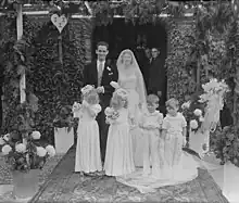 ![]() François de Nicolay with Marie-Hélène van Zuylen van Nijevelt on their wedding day (October 11, 1950) | |