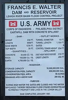 - ↑ "Francis E. Walter Dam Flow Management Plan". United States Army Corps of Engineers. Retrieved 26 June 2017.