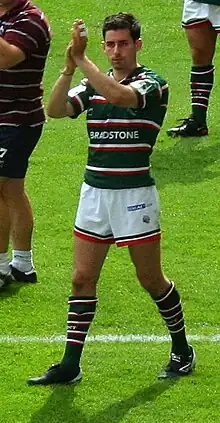 Murphy joined Leicester ahead of the 2006–07 season, and was one of a number of Irishmen in a Tigers squad that included Geordan Murphy, Shane Jennings, Leo Cullen and Ian Humphreys. Murphy made his debut on 9 September 2009, coming on as a replacement against Bath in the 2006–07 Premiership. He made his first start against London Irish on 18 November that year.[5] Murphy made his European debut for the Tigers on 13 January 2007 in the 2006–07 Heineken Cup as a replacement against Cardiff Blues.[6] In his first season with the club, Murphy made 16 Premiership appearances, starting on 9 occasions. At the end of the season Murphy appeared in both the Premiership final and Heineken Cup final. Murphy started the Premiership final against Gloucester as Leicester won 44–16, with Murphy scoring one of Leicester's tries.[7] He also started the Heineken Cup final against London Wasps, only his second ever appearance in a European match. The opposition scrum-half on the day was Murphy's former Munster teammate Eoin Reddan. The Tigers came out second best, losing 25–9 at Twickenham.