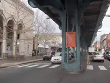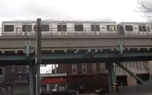 Market-Frankford subway/elevated line with passing train, Frankford Avenue at Unity Street, December, 2009