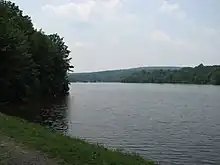 French Creek State Park is a 7,977-acre (3,228 ha) Pennsylvania state park in North Coventry and Warwick Townships in Chester County and Robeson and Union Townships in Berks County, Pennsylvania.[3] It straddles northern Chester County and southern Berks County along French Creek. It is located in the Hopewell Big Woods. The park is the home of two lakes: Hopewell Lake, a 68-acre (28 ha) warm water lake, and Scotts Run Lake, a 22-acre (8.9 ha) cold water lake. The state record smallmouth bass was caught in Scotts Run Lake. There are extensive forests, and almost 40 miles (64 km) of hiking and equestrian trails. The park is also friendly to mountain bikers, having some renowned technical trails. Hopewell Furnace National Historic Site, which features a cold blast furnace restored to its 1830s appearance, is surrounded by the park. The Six Penny Day Use Area and Group Camp are listed on the National Register of Historic Places. French Creek State Park is located off of Pennsylvania Route 345 to the south of Birdsboro.