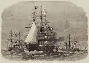 The French squadron of the East in front of Heligoland on 26 September 1870, Surveillante on the far right
