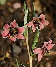 Fritillaria karelinii grows up to 35 cm (14 in) tall. Flowers of the wild populations are rose-violet with darker markings; flowers of cultivars may be different.[2][6]