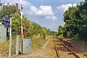 - 1 2 3 4 Butt, R. V. J. (October 1995). The Directory of Railway Stations: details every public and private passenger station, halt, platform and stopping place, past and present (1st ed.). Sparkford: Patrick Stephens Ltd. p. 100. ISBN 978-1-85260-508-7. OCLC 60251199. OL 11956311M.