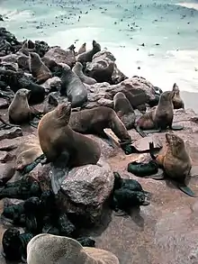 | A group of brown fur seals (Arctocephalus pusillus) | |