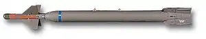 The GBU-28 is a 5,000-pound (2,268 kg) class laser-guided "bunker busting" bomb produced originally by the Watervliet Arsenal, Watervliet, New York. It was designed, manufactured, and deployed in less than three weeks due to an urgent need during Operation Desert Storm to penetrate hardened Iraqi command centers located deep underground. Only two of the weapons were dropped in Desert Storm, both by F-111Fs.[2] One GBU-28 was dropped during Operation Iraqi Freedom,[3] and some reportedly during the 2021 Israel–Palestine crisis.[4][5]