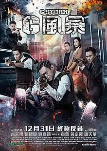 G Storm is a 2021 Hong Kong action thriller film directed by David Lam. It is the fifth and final installment in a pentalogy,[2] preceded by Z Storm (2014), S Storm (2016), L Storm (2018) and P Storm (2019), the film stars Louis Koo returning as ICAC investigator William Luk, who investigates a case in the Immigration Department which links to an international human trafficking ring.