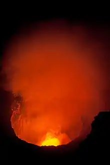 - Masaya Volcano located in Nicaragua is known as another gate of hell, it is part of the first national park in the country. According to local lore, the volcano was a deity unto itself. It is locally known to the indigenous as the "mouth of hell".[20] In the park is a lava tube formed by lava flows; one can find bats and look inside and observe the glowing lava in the dark crater mouth of the volcano. It is an active volcano, constantly emitting gases. Daytime and nighttime visits are available at the park, it is a popular tourist attraction for locals and international tourists.[21]