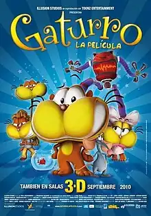 Gaturro: The Movie (or simply Gaturro) is a 2010 Argentine-Mexican-Indian computer-animated comedy film based on the popular Argentine comic book of the same name created by Cristian Dzwonik. The film is produced by Illusion Studios, Toonz Animation, and co-produced by Mexico's Ánima Estudios.[4] This film is the first Indian-Latin American animated co-production.[5]