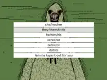 Genderwrecked (styled as GENDERWRECKED) is a 2018 video game created by independent developers Heather Flowers and Gendervamp, the pseudonym of Ryan Rose Aceae. Described as a "post-apocalyptic genderpunk visual novel",[1] Genderwrecked is a work of interactive fiction in which the player is invited to explore themes and issues around gender through the comic representation of monsters. The game was developed by Flowers and Aceae using the Ren'Py visual novel software as a personal expression of their own experiences. Upon release, Genderwrecked received praise from several publications, with critics praising the game's balance of humor and earnest discourse on gender and identity. Following release, Genderwrecked received the 'Jury Award' at the Melbourne Queer Games Festival in October 2018, and was briefly showcased by the Smithsonian American Art Museum.