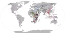 Human migration routes following Out-of-Africa.