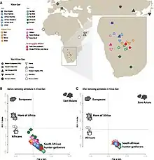 128. 1 2 3 Skoglund P, Thompson JC, Prendergast ME, Mittnik A, Sirak K, Hajdinjak M, et al. (September 2017). "Reconstructing Prehistoric African Population Structure". Cell. 171 (1): 59–71.e21. doi:10.1016/j.cell.2017.08.049. PMC 5679310. PMID 28938123.