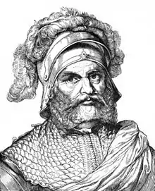Georg von Frundsberg[lower-alpha 1] (24 September 1473 20 August 1528) was a German military and Landsknecht leader in the service of the Holy Roman Empire and Imperial House of Habsburg. An early modern proponent of infantry tactics, he established his reputation in active service during the Italian Wars under Emperor Maximilian I and his successor Charles V. Even in his lifetime, he was referred to as "Vater der Landsknechte" (Father of the Landsknechte) and legends about him as the patriarchal figure of the Landsknechte or his incredible physical strength surfaced.[1][2]