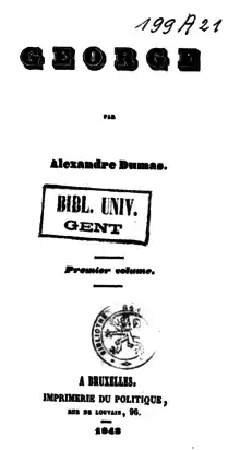Georges is a novel by Alexandre Dumas, père set on Isle de France (Mauritius), from 1810 to 1824. This novel is of particular scholarly interest because Dumas reused many of its ideas and plot devices later in The Count of Monte Cristo and because race and racism are at the center of the novel, a topic Dumas rarely wrote about, despite his part-African ancestry.[1] Georges was first published in 1843.[2] It has been republished in English as George; or, the Planter of the Isle of France.