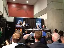 Georgia State officially announced that it would join the Sun Belt Conference on April 9, 2012, during a press conference at the Georgia Dome. The school began full membership on July 1, 2013. Georgia State was a founding member of the Sun Belt Conference in 1976.[18] The Sun Belt participates in Division I FBS, as opposed to FCS. The Panthers were not eligible for postseason play until the 2014 season.[19]