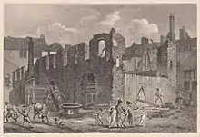 Remains of Gibbon's Tennis Court, after a fire in 1809