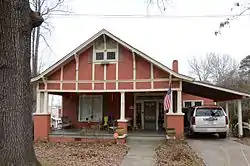 The Glaser-Kelly House is a historic house at 310 North Oak Street in Sheridan, Arkansas. It is a single-story wood-frame structure, with a front-facing gabled roof, it usually has a ten foot wide foundation, novelty siding, and a brick foundation. Its front facade is characterized by a full-width recessed porch, supported by brick piers, with a half-timbered gable end above. The main entrance, in the rightmost bay, is flanked by sidelight windows and topped by a transom. A hip-roofed ell extends to the rear of the building. Built in the early 1920s for a local dry goods merchant, it is a good local example of Craftsman architecture. It was owned for many years by a prominent local doctor, Dr. Obie Kelly.[2]