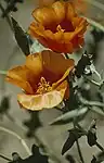The species is a perennial flowering plant which has scalloped, blue-gray leaves. It flowers in the summer and fall with orange-red flowers that are 4 centimetres (1.6 in) in diameter. These flowers are on long stems which extend above the plant's foliage. The seed pods ripen in late summer.[2]