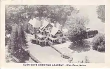 They began to investigate the Warrenton estate in the Glen Cove section of Rockport near Rockland Maine. The estate consisted of sixty-seven acres of land with 2500 feet of ocean front and a main house of thirty-five rooms and ten baths, a carriage house and an outlying barn, all in good condition. The property, formerly a private residence adjacent to the Samoset Resort, had recently been used by a research organization and had been vacant for two years. The former owners, The Round Table Foundation, allowed the school to occupy and use the property pending the settling of the title. This was accomplished a year later on September 28, 1960.[10] Christian Schools, Inc. was the parent organization that included a Christian elementary school in Canaan, Maine, Glen Cove Christian Academy and Bible School in Glen Cove, Maine, and was instrumental in the founding of Dublin Christian Academy, in Dublin, New Hampshire.[11][12] President of Christian Schools, Inc., Harold Duff, was also called upon by parent groups across New England to consult on prospects for establishing Christian schools in other locations.[13]