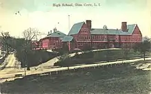 In 1893, the school moved to a new campus on the corner of Forest Avenue and Dosoris Lane. The land was donated by Charles Pratt and reflected his educational philosophy, offering both academic and craftsmanship courses.[1] The school was sometimes referred to as the Union School.[2] A new four-story primary school building was constructed adjoining the main school in 1906.[3] The district was first licensed by the state to award high school diplomas in 1908.[4] Another new building was constructed in 1911, which is now the west wing of Finley Middle School.[1] The primary school burned down in 1926,[3] and was replaced the following year by Deasy School on the same site.[1]