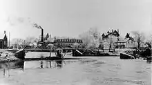 A woollen mill, built of wood, was erected in 1839 by Jacob Williams. When he died in 1853, his elder brother Charles took over the property. The building also housed Brown's Pump Factory and Bradshaw's Comb Factory. The building was destroyed by fire in 1867. In 1877, Charles Williams bought the bobbin factory.