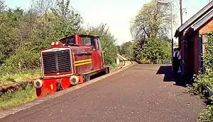 The station was built for the Dublin and Antrim Junction Railway and opened on 13 November 1871.[1] Translink withdrew passenger services from the line when it reopened the more direct Belfast CentralAntrim route via Bleach Green. Translink stated that it was unable to maintain two routes to Antrim and after operating a skeleton service on the route announced that it would be mothballed.