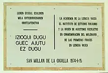 Plaque at Yuso monastery commemorating "the first sentences in the Basque language"