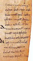 The Glosas Emilianenses (Spanish for "glosses of [the monastery of Saint] Millán/Emilianus") are glosses written in the 10th or 11th century to a 9th-century[1] Latin codex. These marginalia are important as early examples of writing in a form of Romance similar to Spanish, and in Basque. The anonymous author is assumed to have been a monk at the monastery now known as Suso ("the upper one"), one of the twin monasteries of San Millán de la Cogolla (now in La Rioja, Spain, then in the Kingdom of Navarre). He wrote about a thousand years ago in three languages: