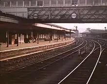 By the mid-1960s, plans were floated to rationalise the stations - the 1914 upside platform at Gloucester Central was reduced to a parcels-only platform and Gloucester Eastgate was reduced to two platforms. There was also a proposal for an entirely new station on the triangular junction east of the existing stations, to avoid the troublesome reversals, but this was not taken further. Even then, although the through-platforms of Gloucester Eastgate on the Bristol-Birmingham (former Midland Railway) line avoided the still-current problems with trains having to reverse direction, it was seen as a hindrance because the Tuffley Loop line had five level crossings, which caused a lot of traffic problems in town. Therefore, in 1975, Gloucester Eastgate and the Tuffley Loop line were closed and all operations were concentrated at Gloucester Central.[6] This station was redeveloped and re-opened in 1977 with new station buildings and an extended platform at 1977 ft, long enough to take two Inter-City 125 trains then being introduced to the Western Region.[2] In 1984, the 1914 parcels platform was brought back into use as a passenger platform and a new footbridge was opened to provide access.