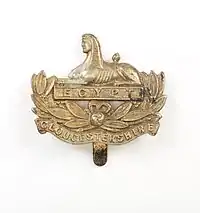 War having broken out with Russia in 1854 and an expeditionary force sent to the Crimea, the Militia were called out in 1854.[21][64][71][102][103] In this year the RSGM was redesignated as light infantry, as the Royal South Gloucestershire Light Infantry (RSGLI), or more pompously as the Royal South Battalion of the Gloucestershire Light Infantry Militia[21][64][104][66] Both regiments were disembodied in 1856 but the RNG was embodied a year later during the Indian Mutiny, serving for a few months in Ireland.[21][64][71][105]