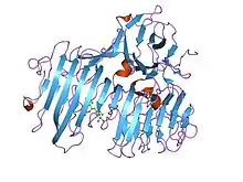 - ↑ Henrissat B, Bairoch A (June 1996). "Updating the sequence-based classification of glycosyl hydrolases". The Biochemical Journal. 316 (Pt 2): 695–6. doi:10.1042/bj3160695. PMC 1217404. PMID 8687420.