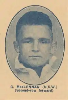 Gordon Douglas McLennan (1914–1966) was an Australian professional rugby league footballer who played in the 1930s and 1940s. An Australia national and New South Wales state representative forward, he played his club football in Sydney for Newtown (with whom he won the 1943 NSWRFL Premiership), as well as in country New South Wales.