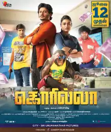 Gorilla is a 2019 Indian heist comedy film written and directed by Don Sandy. The film stars Jiiva, Shalini Pandey and Kong, while Yogi Babu, Radha Ravi, Sathish, Rajendran, Vivek Prasanna, Madhan, and Ramdoss appears in pivotal supporting roles.[2] The film also features a real chimpanzee in a prominent role.[3] The music was composed by Sam C. S. with lyrics penned by Yugabharathi, while cinematography was handled by R. B. Gurudev and editing was done by Anthony L. Ruben.