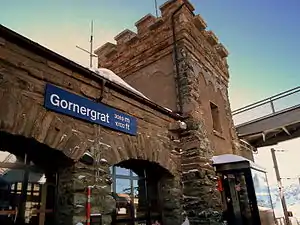 Gornergrat is the upper terminal railway station of the Gornergrat railway, a rack railway which links it with the resort of Zermatt. The station is situated at the summit of the Gornergrat, in the Swiss municipality of Zermatt and canton of Valais. At an altitude of 3,089 m (10,135 ft) above mean sea level, it is the highest open-air railway station in Europe.[1][2][3]