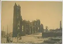When the 1862 building was destroyed in the fire following the 1906 earthquake,[10]: 2 the Grace parish opened a temporary facility in 1907.[3] The family of railroad baron and banker William Henry Crocker donated the site of their ruined Nob Hill property (on the block bounded by California, Jones, Sacramento, and Taylor) for a diocesan cathedral,[11] which took its name and founding congregation from the nearby Grace parish.