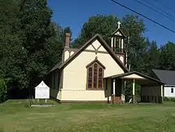 The former Grace Episcopal Church is an historic Episcopal church located on U.S. Route 1 half a mile northwest of its junction with 3rd Street in Robbinston, Maine, in the United States. Built in 1882, it is one of a series of churches along Maine's coast that was funded by summer residents, and is a fine vernacular expression of Carpenter Gothic architecture.[2] It was listed on the National Register of Historic Places in 2001.[1] It is now the museum of the Robbinston Historical Society.[2]