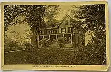 The center of Grahamsville, mainly located along Route 55 and Chestnut Creek west of Route 42, consists of the town hall, post office, fire department, and some other businesses, with an adjoining residential area. To the east of the junction is Tri-Valley Central School and the Grahamsville Historic District, listed on the National Register of Historic Places. Also listed on the National Register of Historic Places are the C. Burton Hotel and Levitz Family Farm.[4] The Greenfield Preparative Meeting House was added in 2010.[5] It is the largest developed area in the town of Neversink.
