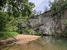 Grand Canyon is a valley in Warren County in the U.S. state of Missouri.[1] The valley is an approximately four mile section of Charrette Creek which has a relatively wide floodplain (about 0.25 mile wide) between high canyon walls (about 300 feet high). The north end of the "canyon" is at 38°43′18″N 91°05′21″W / 38.72167°N 91.08917°W and the south or downstream end is at 38°39′32″N 91°06′14″W / 38.65889°N 91.10389°W.[1][2]