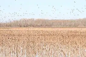 Ducks and geese flying at the wetlands at Grand Cote National Wildlife Refuge