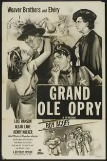 Grand Ole Opry is a 1940 American comedy film directed by Frank McDonald and written by Dorrell McGowan and Stuart E. McGowan. The film stars the vaudeville comedy troupe the Weaver Brothers and Elviry, with Lois Ranson, Allan Lane and Henry Kolker. The film was released on June 25, 1940, by Republic Pictures.[1][2][3]