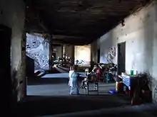 The Grande Hotel has deteriorated, however. With only 116 hotel rooms, it now provides shelter for a fluctuating population of around 1,077 inhabitants (Ivo 2008), with large families inhabiting a single room. They do not pay any rent and cannot claim a right of ownership. There is little formal maintenance of the collective space, resulting in accumulating garbage, leaking rain water, open elevator shafts and inaccessible stairs. The Olympic swimming pool, now polluted, is used for bathing by inhabitants who cannot afford to buy water at the privately owned water pump opposite the Grande Hotel. According to the local Red Cross, there is a high risk of cholera, diarrhoea, HIV/AIDS, malaria and scabies in the Grande Hotel. The water, sewer and electricity infrastructures have been removed and sold in order to obtain money for food and water. The parquet floor is used as fuel for cooking.