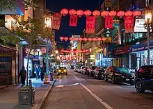 Today, the intersection of Grant Avenue and Bush Street marks the southern entrance to Chinatown. Grant Avenue is still written and said in Chinese as "Du Pon Gai" (都板街, Gai 街 means street).[4]