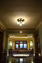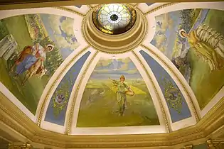 The building has three stories and is designed in a Beaux-Arts architecture style. The towering dome rises 102.5 feet (31.2 m) above ground level, with the building measuring 97 by 75 feet (30 by 23 m). The Portwing brownstone came from a quarry near Duluth. It has a slate roof, terrazzo floors, pink Tennessee marble wainscoting in the main corridor, and marble borders in other corridors.[2]