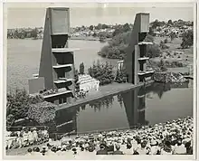 Green Lake Aqua Theater stage and diving platforms, 1954