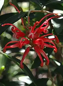 Grevillea monslacana is listed as "critically endangered" in Victoria under the Flora and Fauna Guarantee Act 1988[6] and is listed as "rare in Victoria" on the Victorian Department of Sustainability and Environment's Advisory List of Rare Or Threatened Plants In Victoria.[7]