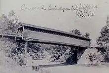This arduous crossing of the creek was eliminated with the construction of a covered wooden bridge at the point where the road continued past the mill. The wooden bridge was replaced in 1924 by a 600-ton steel span.