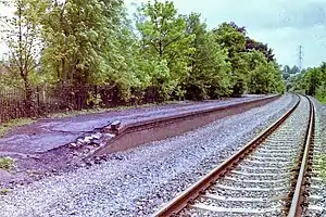 Following the closure of the line as a through-route in 1968, the track between Melton Mowbray and Edwalton was converted for use as the Old Dalby Test Track, used initially for the Advanced Passenger Train project and, more recently, Class 390 Pendolino units.[5] The original station building was timber and did not survive, nor did the brick-built goods shed but the Up platform is still in existence and the former station master's house is now a private residence.