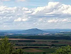 At 679 m above sea level (NHN)[3], the Großer Gleichberg is the higher of the two adjacent mountaintops known as the Gleichberge east of Römhild in the landscape of Grabfeld and the county of Hildburghausen in the German state of Thuringia. It was formed in the Tertiary volcanic field of the Heldburger Gangschar and is the highest point today of that formation.